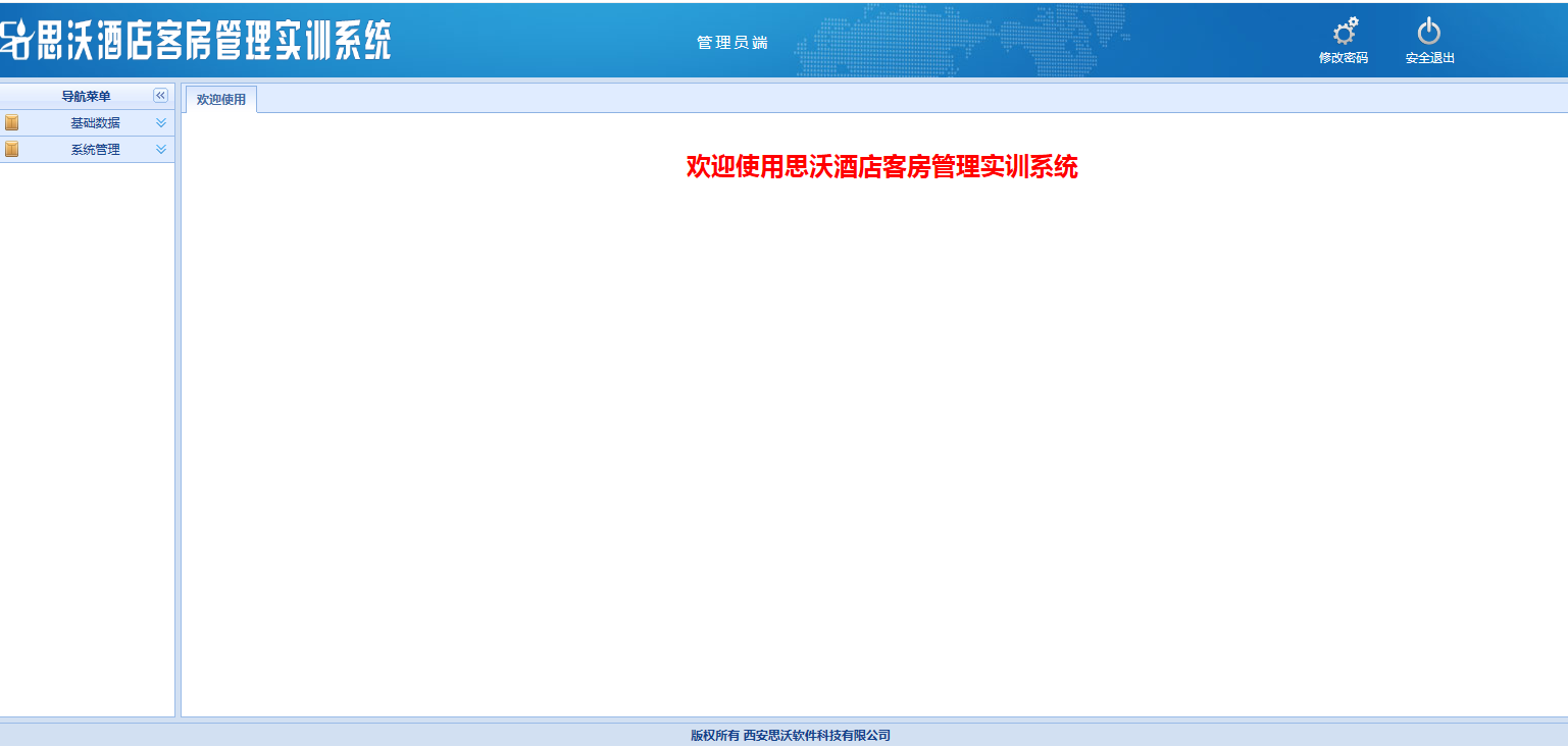 關鍵詞(ci):思沃高校(xiao)酒(jiu)店客(ke)(ke)房管理(li)教學(xue)實訓系統(tong) 酒(jiu)店客(ke)(ke)房管理(li)實訓教學(xue)軟件 酒(jiu)店客(ke)(ke)房管理(li)實訓教學(xue)平(ping)臺