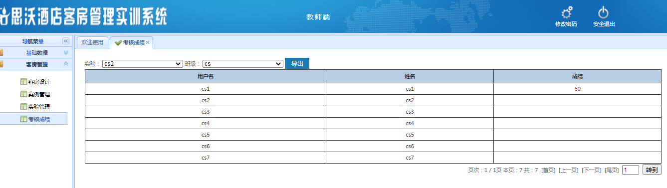 教師登陸界面:基礎數(shu)據、客(ke)房管理,在線(xian)考試,資源拓展(zhan)每個大模塊(kuai)下分別有相應的子模塊(kuai)。