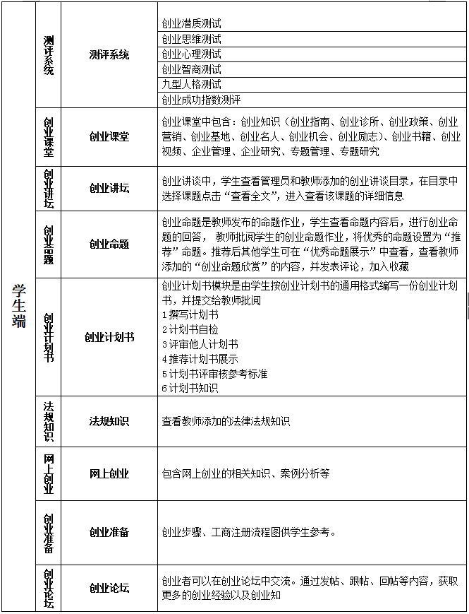 用戶(hu)對象:本教學軟件(jian)適用于各(ge)專業大學生創業的模擬實訓(xun)。