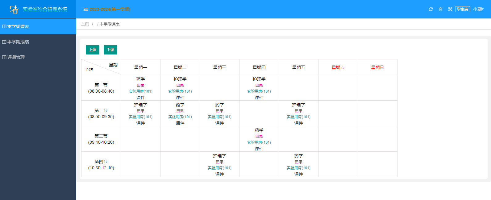 本(ben)學(xue)期課表,本(ben)學(xue)期成績,評(ping)測管理。