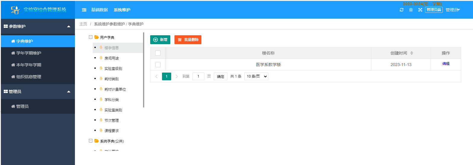 用戶(hu)字典(樓宇(yu)信息(xi),房間用(yong)途,實驗室級(ji)別,耗(hao)材類(lei)別,耗(hao)材計量單位(wei),學科分(fen)類(lei),實驗室類(lei)別,節次管理,課程要(yao)求(qiu))